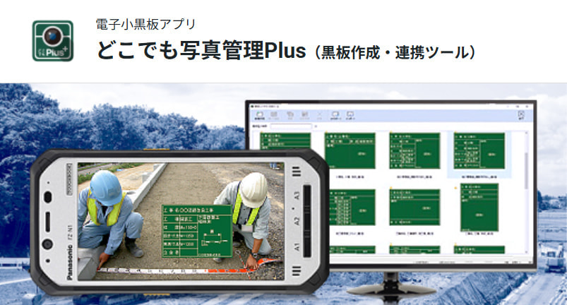 どこでも写真管理Plusは、電子小黒板を配置した工事写真の撮影ができるスマートフォンアプリです。写真と共に、場所や工種、材料や設計値・実測値などの「現場情報」を記録することが可能で、今後の建設DXを強力に支援する技術として期待されています。