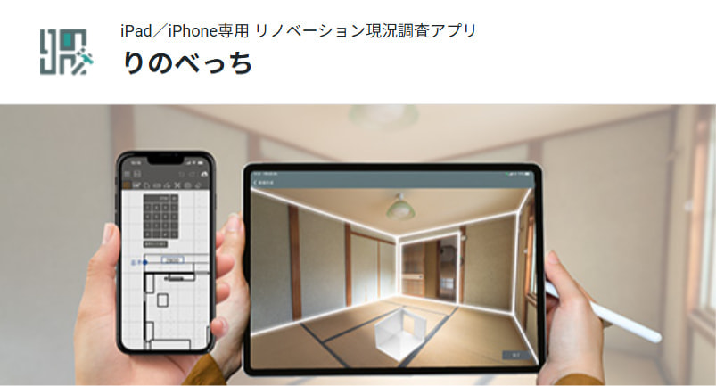 りのべっちは現況調査現場で3Dスキャン(LiDAR機能)して現況図や3Dモデルを自動作成。さらに既存図面などを下図にトレースしながら現況図を作成するなど、調査時間の短縮だけでなく、ARCHITREND ZEROとのデータ相互連携で、リノベーション全般の業務効率化を図ることができます。